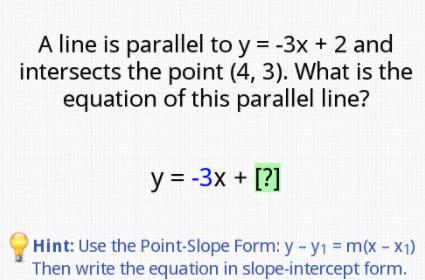 ) will also be -3. So, the parallel line will have a slope of m1 = -3