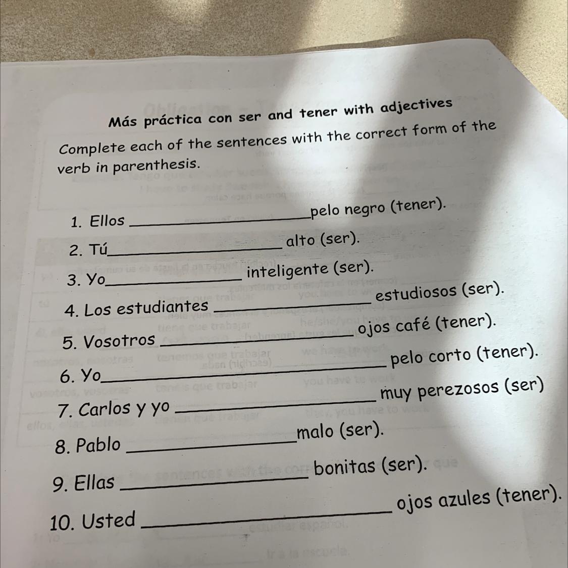 Complete each of sentences with the correct form of the verb in parenthesis.