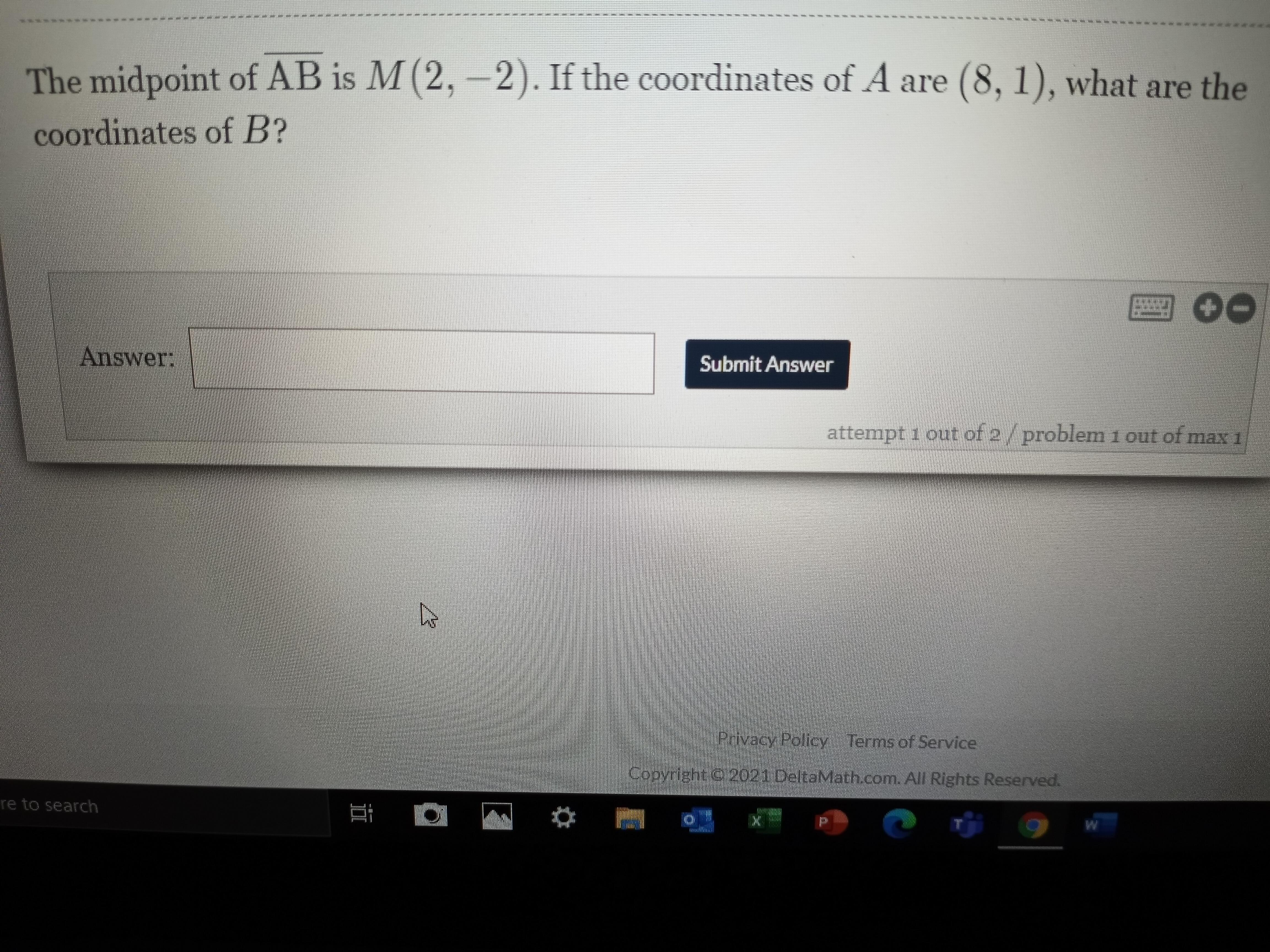 The coordinates of the midpoint for x = sum of x/2=2
