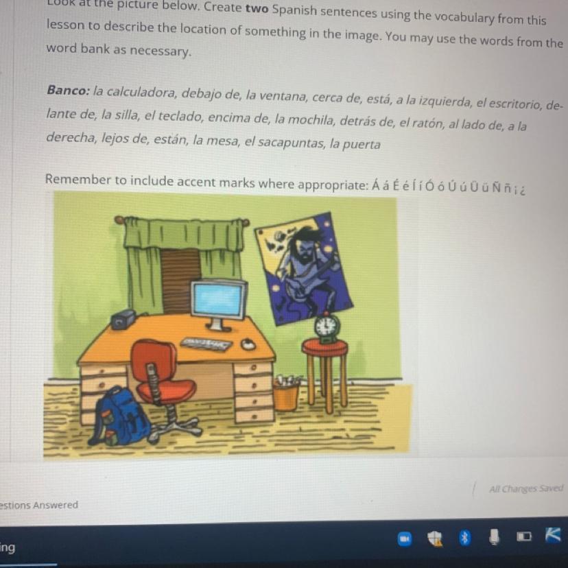 1. El teclado está encima de la mesa.