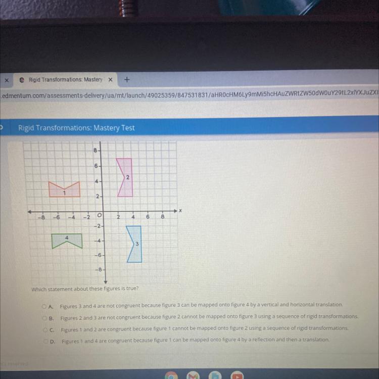 If you reflect Shape 1 and then move it 1 square down (Translation) it will look like Shape 4