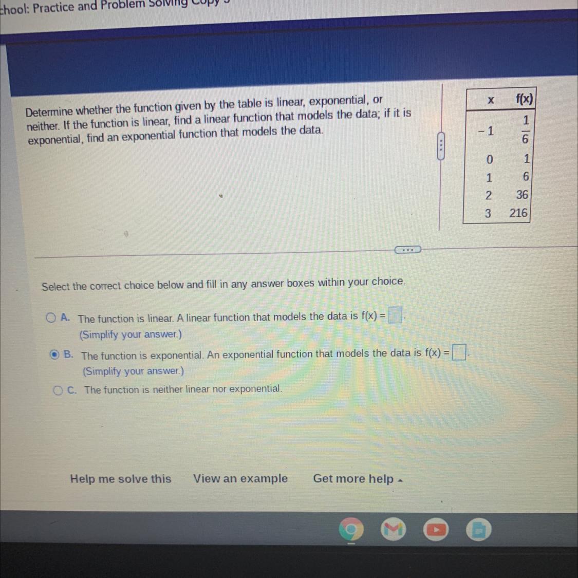 Plugging in x = 0 leads to y = 1, x = 1 leads to y = 6, and so on.