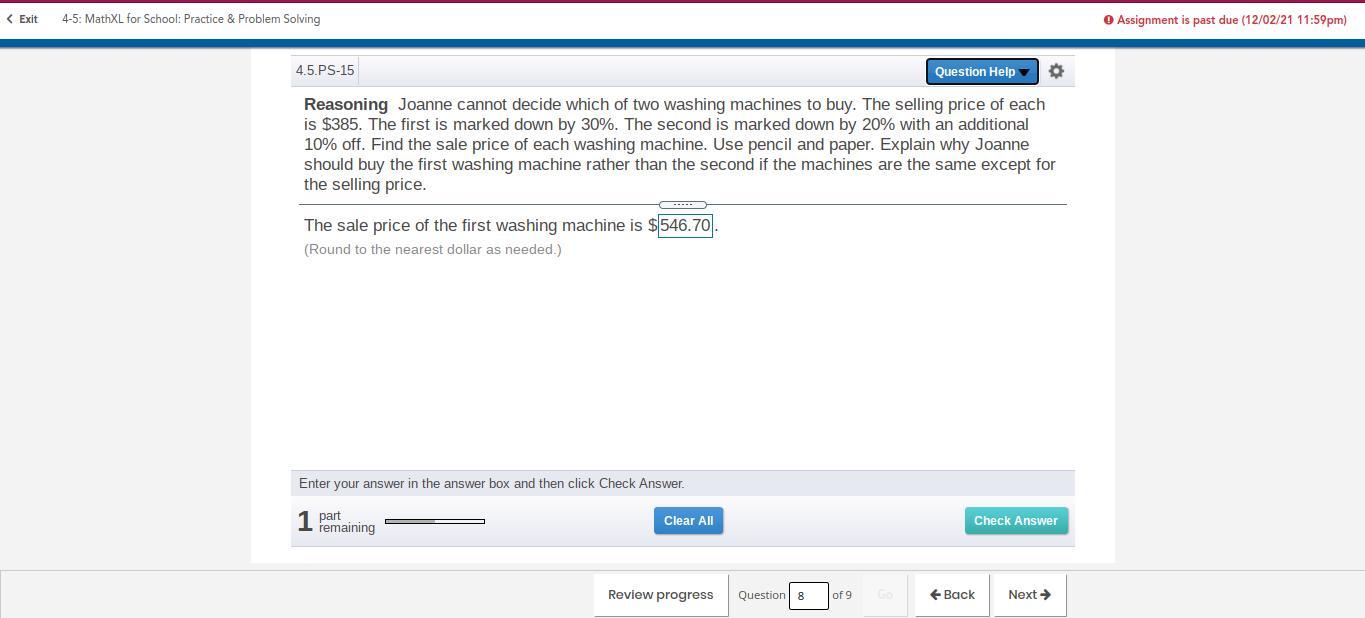 First one is 70% of the original price, 70% of $385 is $269.5.