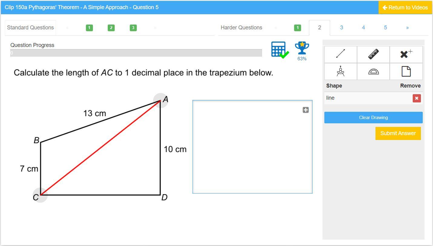 hypotenuse is the string length that we want to find
