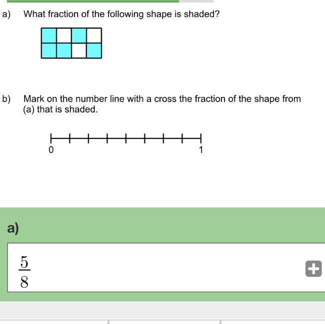 There are 8 square in the box and 5 are filled in, so it is 5/8.