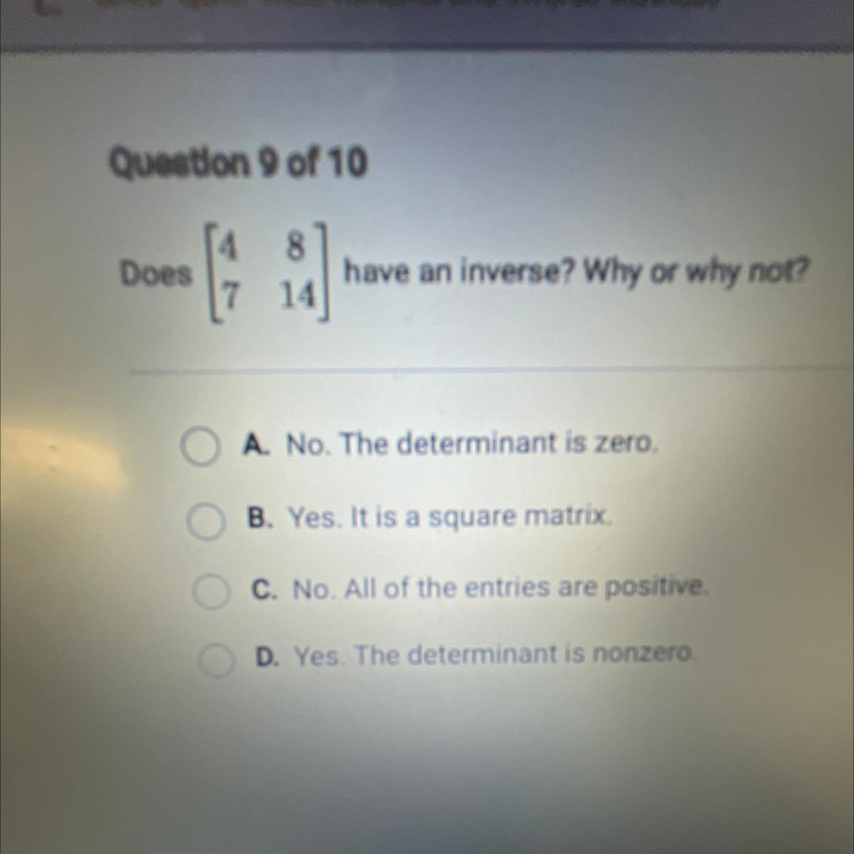 so it does not have an inverse because its determinant is zero.