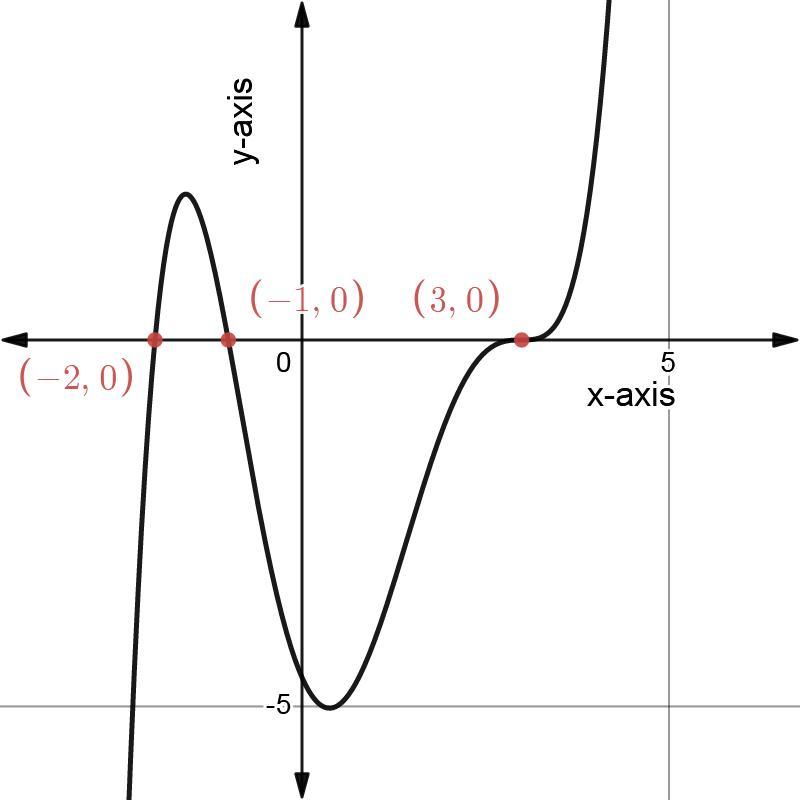 The equation for this polynomial graphed will be P(x) = a(x + 2)(x + 1)(x – 3)³.