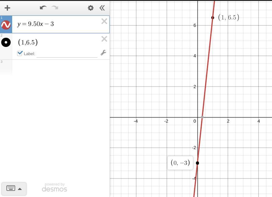 It's a little tough to draw on regular graph paper because the slope is so steep and the slope is not an integer. Shown below is the graph with a couple of the points labeled.