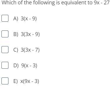 9x - 27 = 3(3x - 9) = 9(x - 3) <u>Now, let's verify all the options.</u>