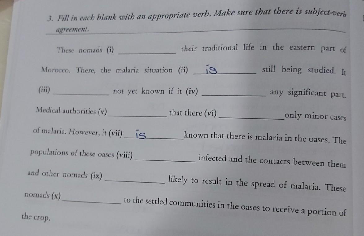 1. live 2. is 3. is 4. damages 5. noticed 6. were 7. is 8. were 9. will be 10. will go