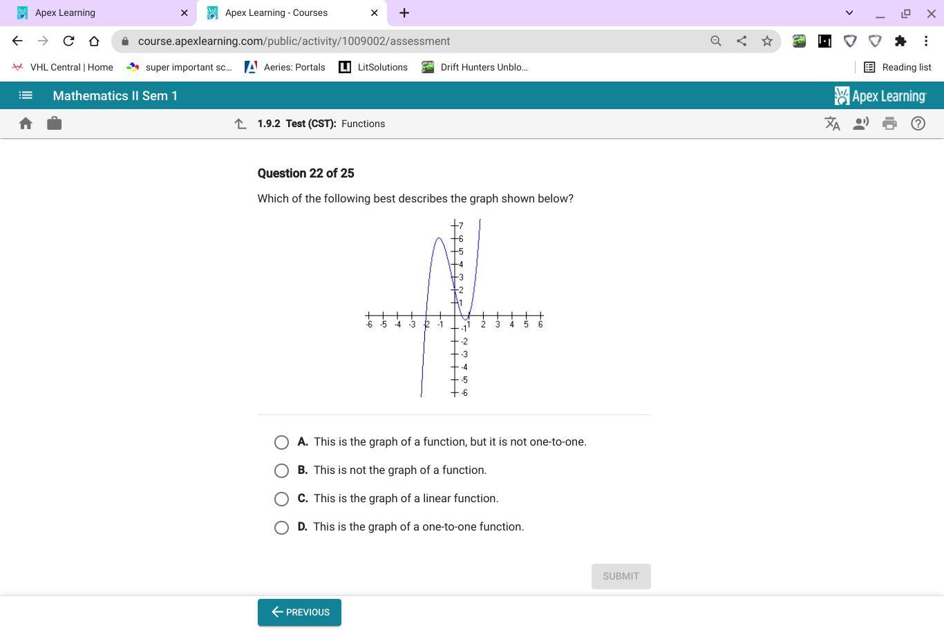 This means that the answer is A: This is the graph of a function, but it's not one-to-one.