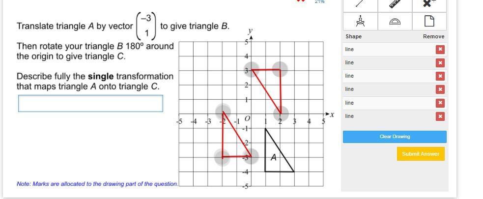 So overall, rotating the original triangle A 180 degrees about (1.5, -0.5) will have it land on triangle C.