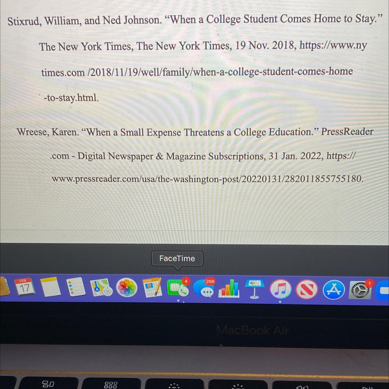 So all you`re missing is the date of when the articles were last edited. It`s ok if they don't provide that though. And then add the date YOU accessed these articles on the end. The photo is blurry on my end so check that your punctuation matches the version I have above.