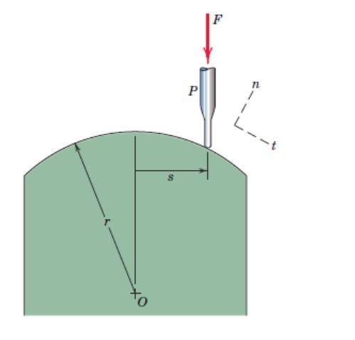 A small probe P is gently forced against the circular surface with a vertical force F as shown . Determine the n- and t-componen