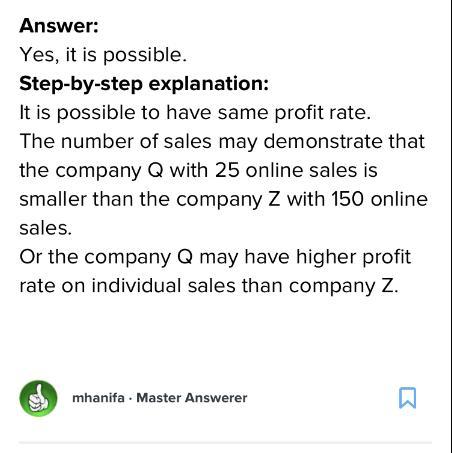 Two companies report a 15% gain in online sales over the last year. Suppose Company Q had 25