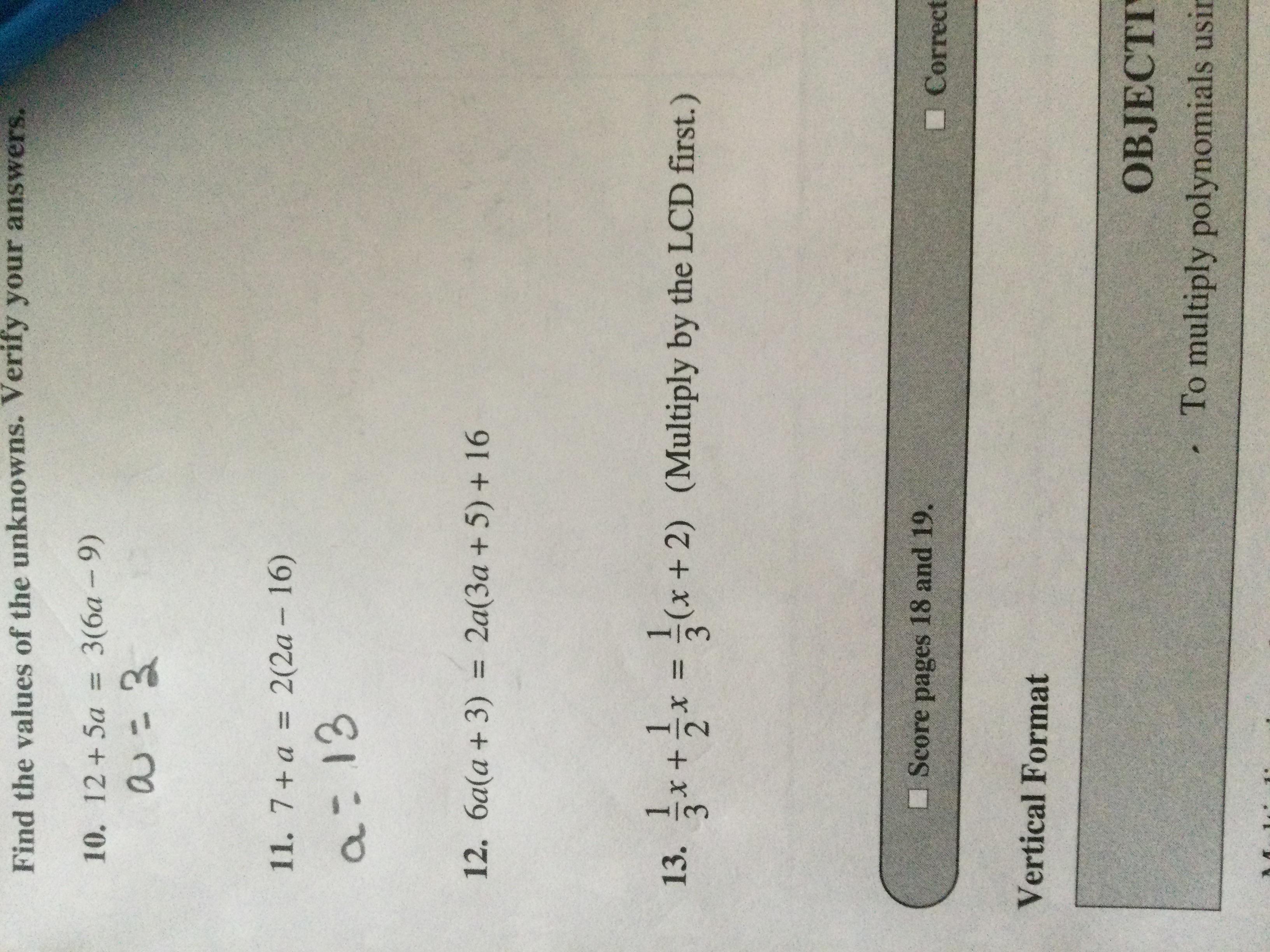 The LCD of 2 and 3 is 6. We multiply both sides of the equation by 6 to get rid of all denominators.