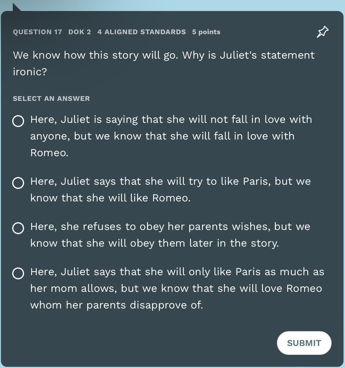 We know how this story will go. Why is Juliet's statement ironic?