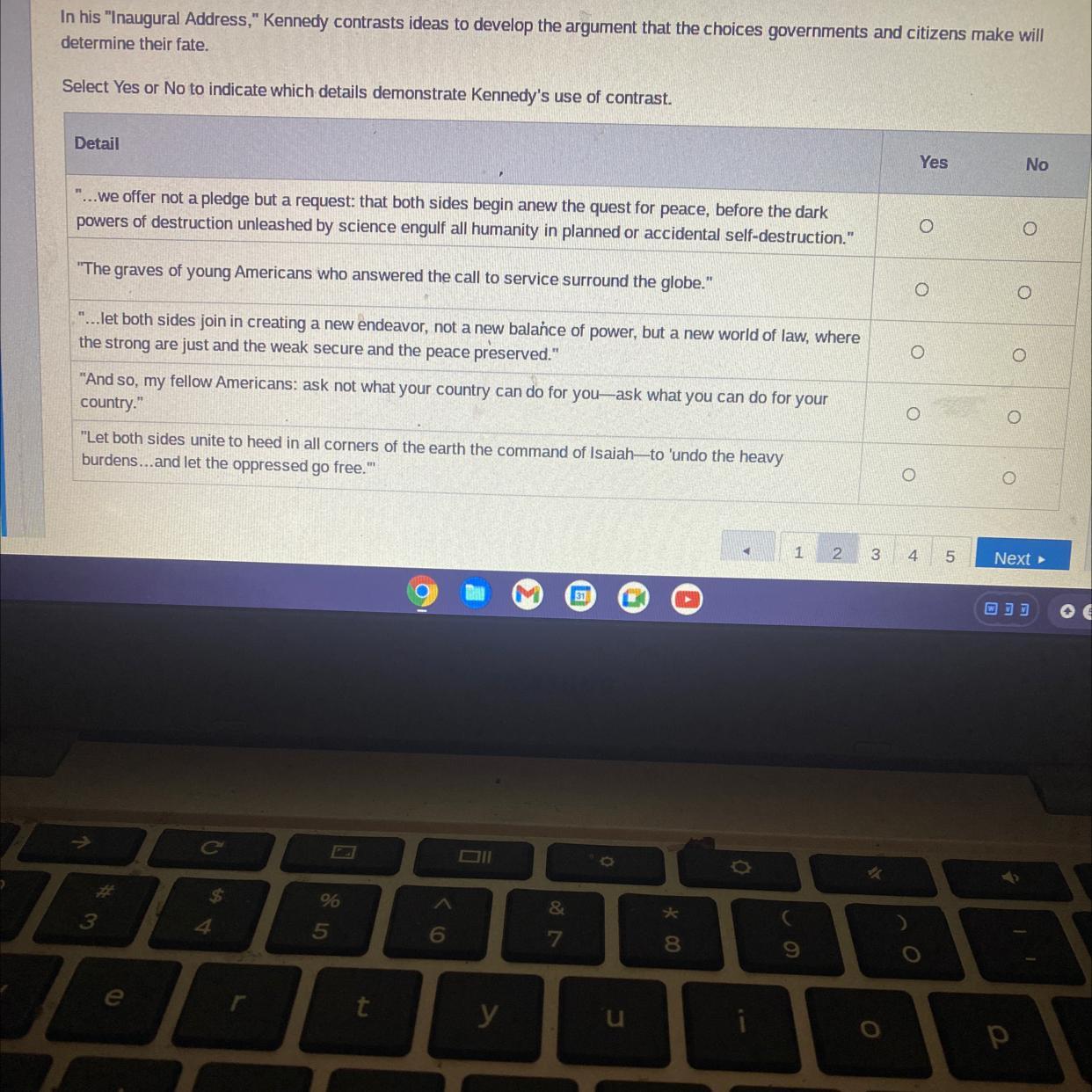 The contrast in President Kennedy's Inaugural address are highlighted as follows:
