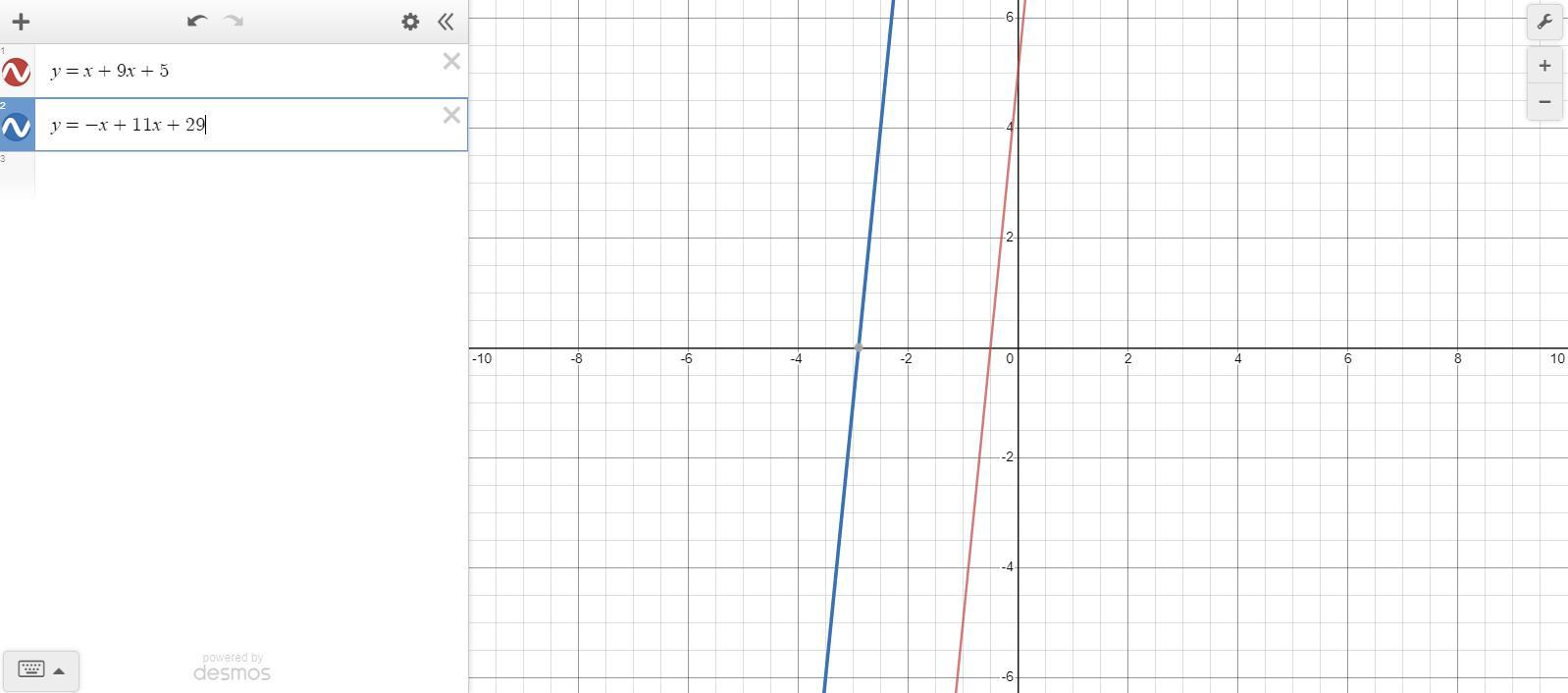 - Substitute in <em>y</em>: 10x + 5 = 10x + 29