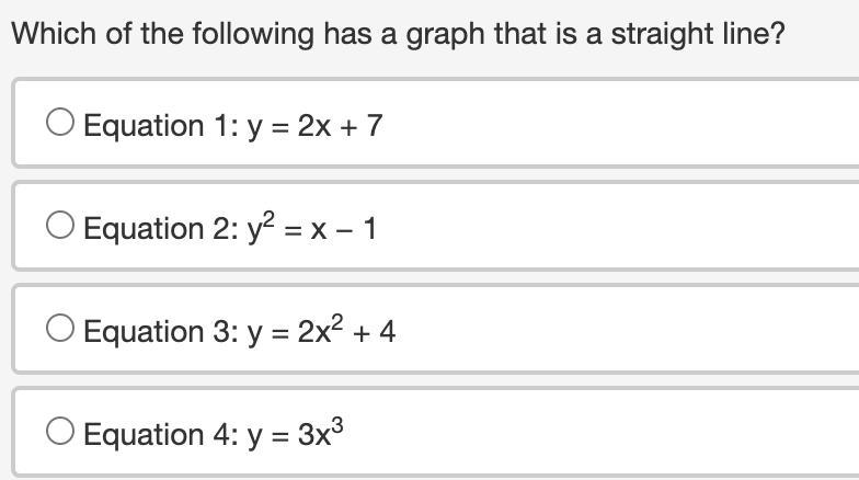 Which of the following has a graph that is a straight line (70 POINTS HURRY PLSSS)