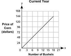 In the previous year, each bushel of corn was 21/3, 42/6, etc., or $7 a bushel. This year, it is $8, so $8-$7=$1