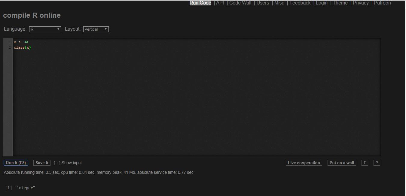 Here x is the object. When this expression is executed in R, the class "integer" of object 'x' is determined by the class() function. R objects for example x in this example have a class attribute determines the names of the classes from which the object inherits. The output of the above expression is: