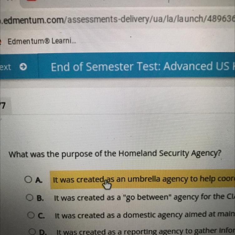 This leaves us with answer “A” being the only plausible answer to fit our description.