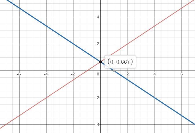 Thus, the point of intersection is (x, y) = (0, 2/3)  or (0, 0.667)
