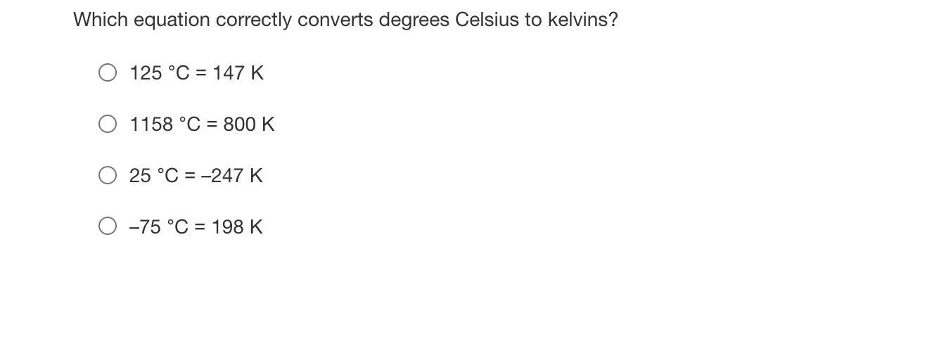 Which equation correctly converts degrees Celsius to kelvins?