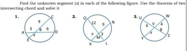 Find the unknown segment (x) in each of the following figure. Use the theorem of two