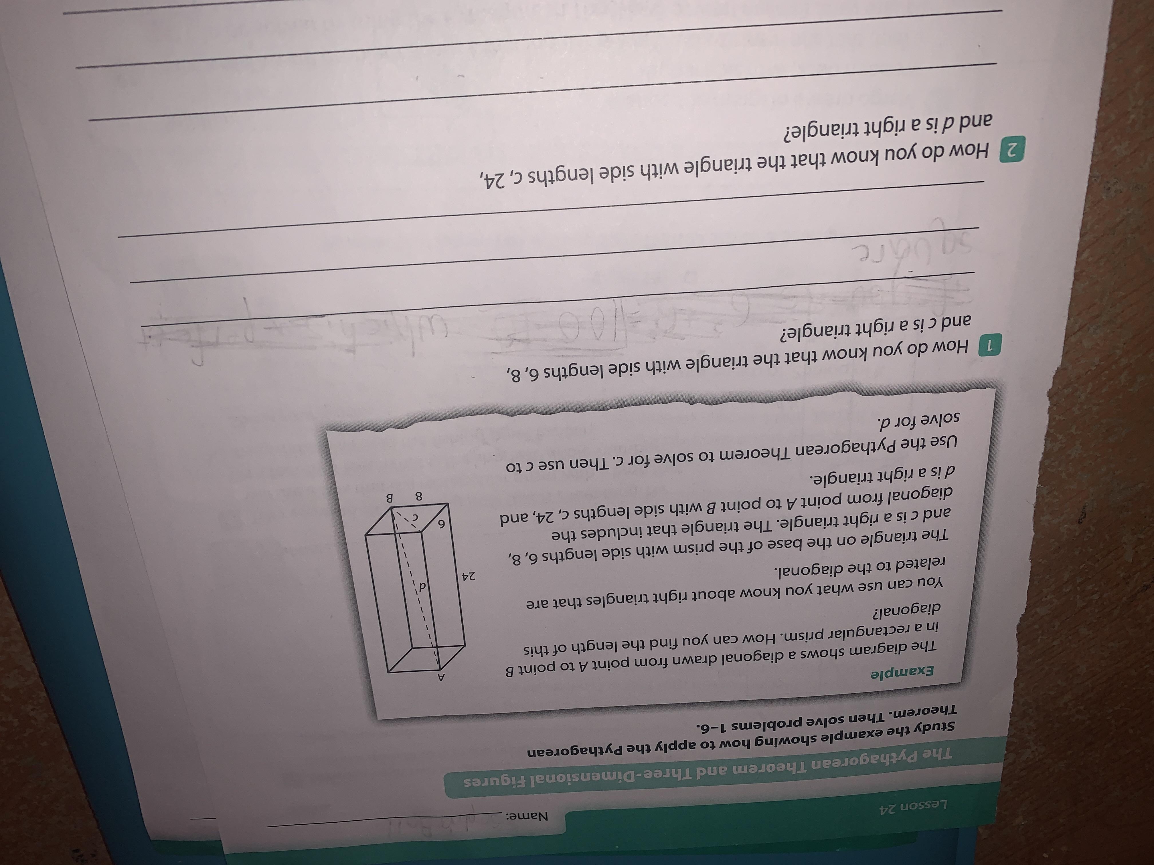 So we can say that , the diagonal of the rectangular base of the prism (c) is perpendicular to the 24 units side face edge.