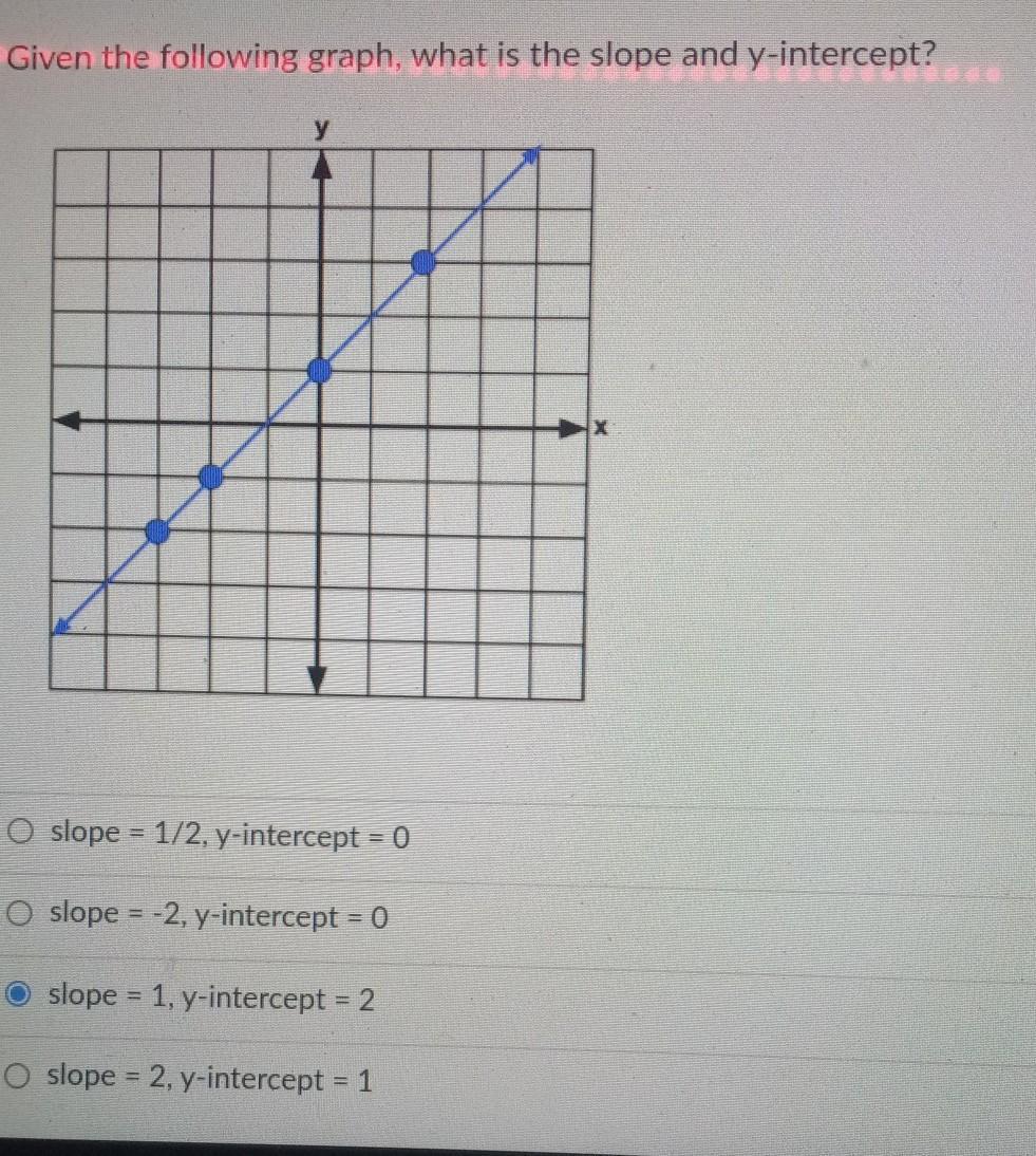 To determine the slope of the given line, slope intercept form can be use and the slope intercept form is given by: