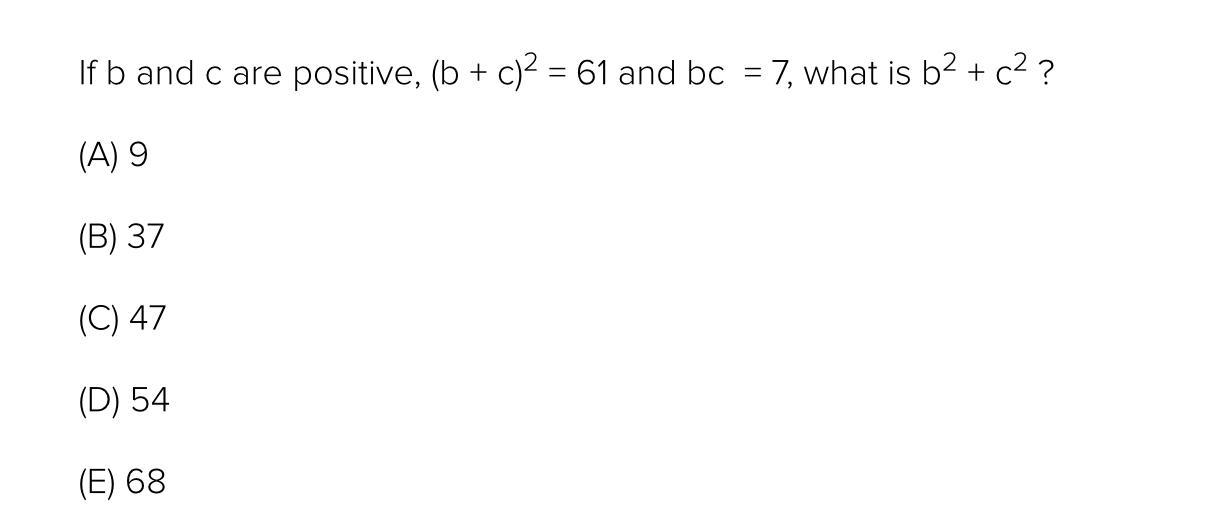 Expand (b + c)² = 61