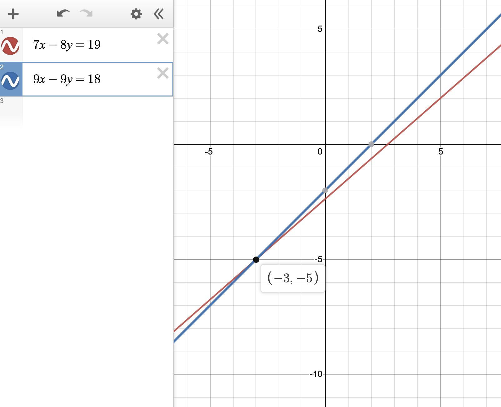The solution is (x, y) = (-3, -5).