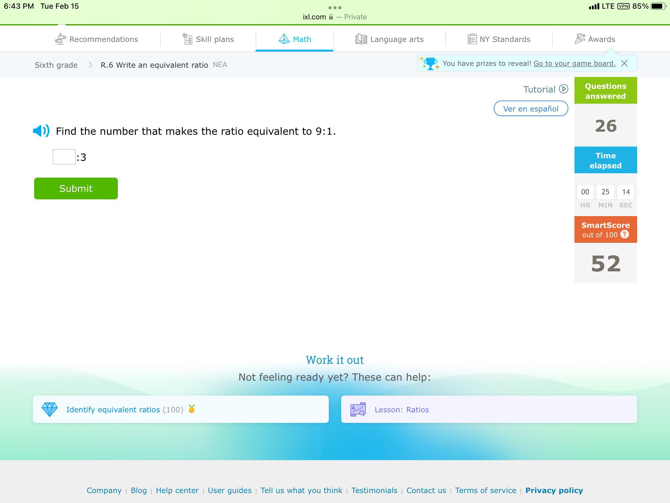 Therefore, the ratio 9:1 is equivalent to 27:3