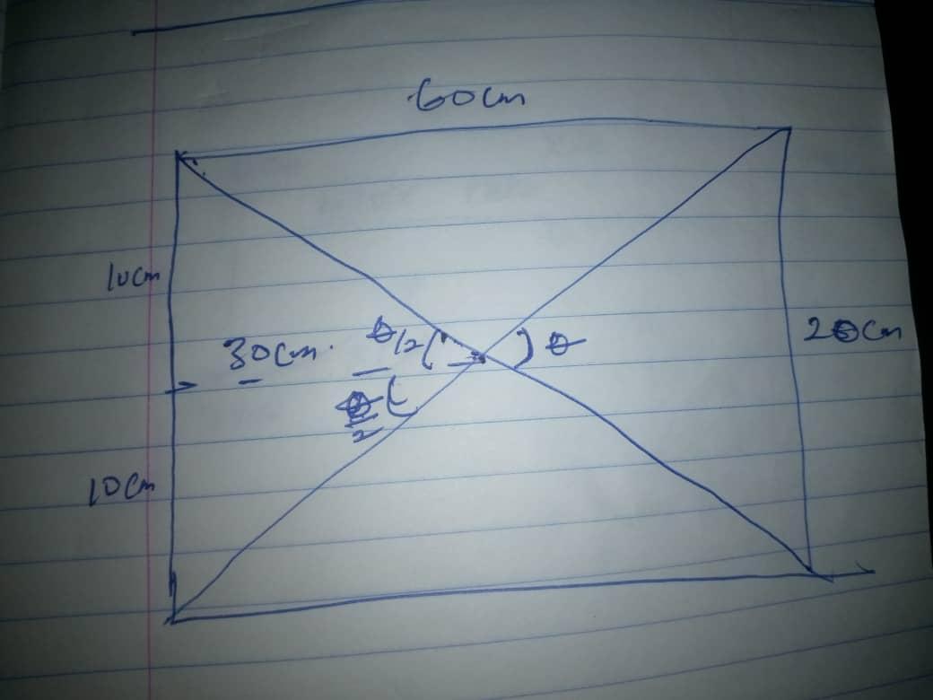 θ is the acute angle formed at the intersection of the diagonals of the rectangle.