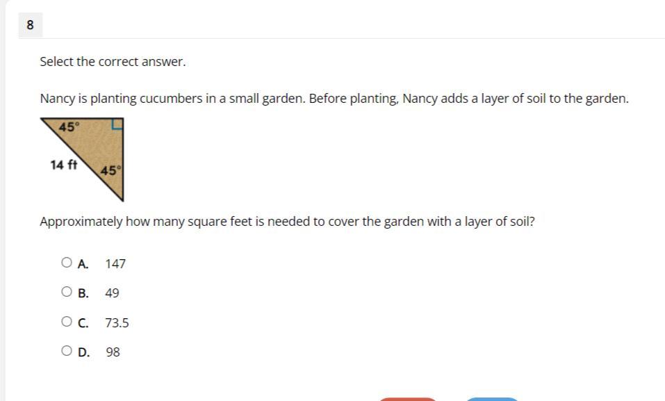We have the area of an equilateral triangle 1/2 the product of the lengths of the 2 sides of the right angle. S=1/2*=49