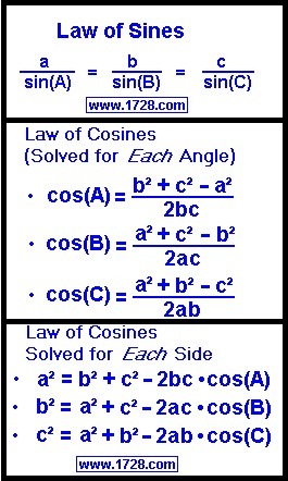 A^2 = b^2 + c^2 -2bc * cos(A)