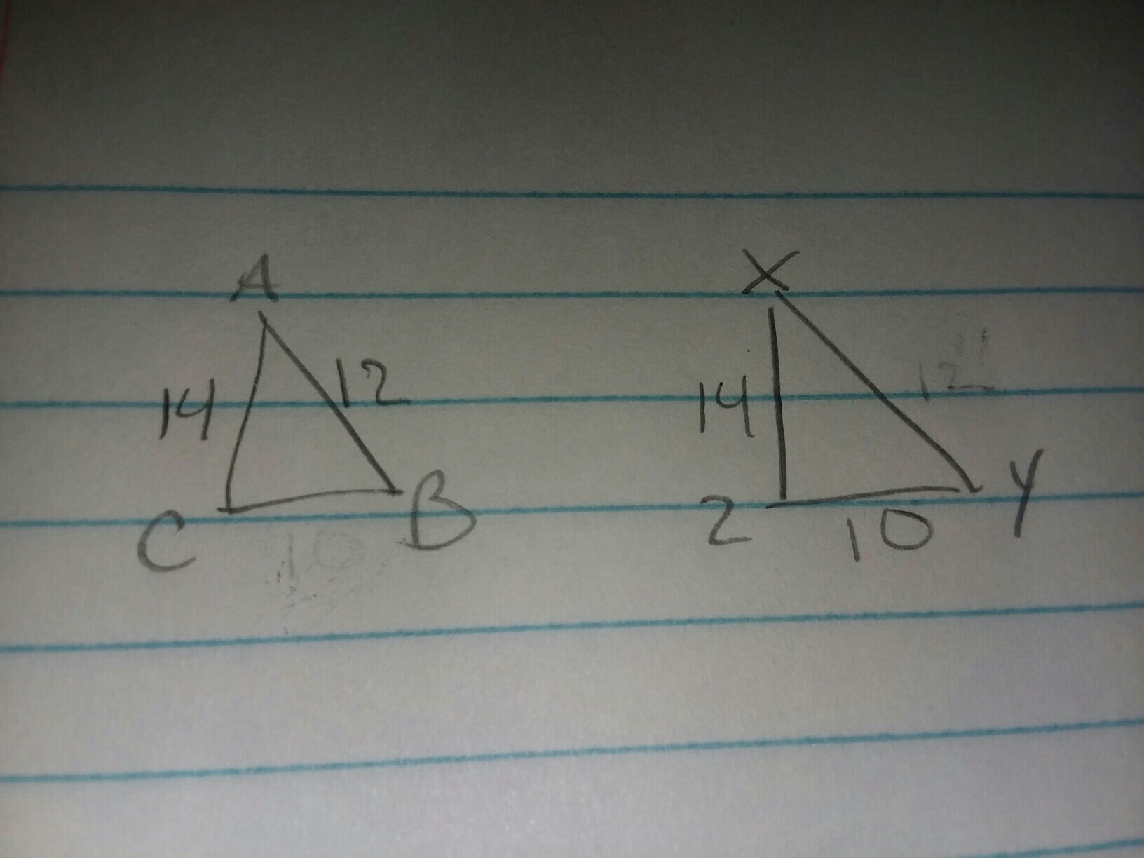 Put them over each other. Put two ther sides over each other. In this case, we don't know the side that goes with AB so we're trying to find it.