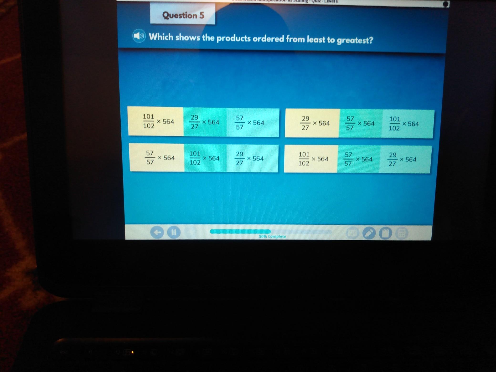 Which shows the products ordered from least to greatest​