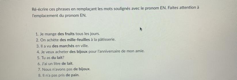 <em>"Mélangeons" (mélanger, first person plural) bien un jaune d’œuf, sucre, fève et amandes avec le chocolat fondu.</em>