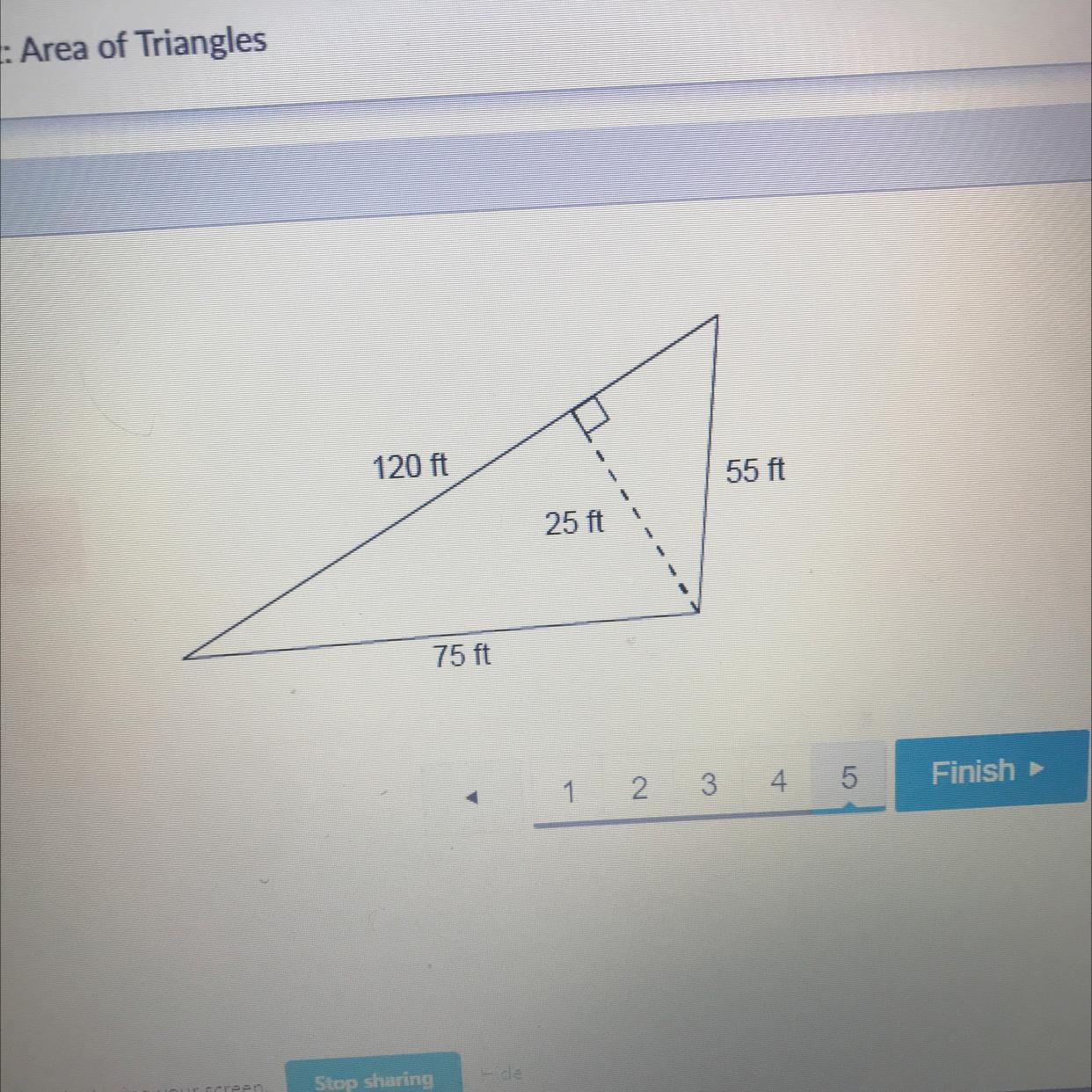 A = 1/2(120 ft)(25 ft) = 1500 ft²