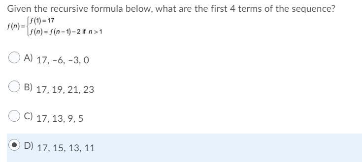 first 4 terms are 17, 15, 13, 11 → D