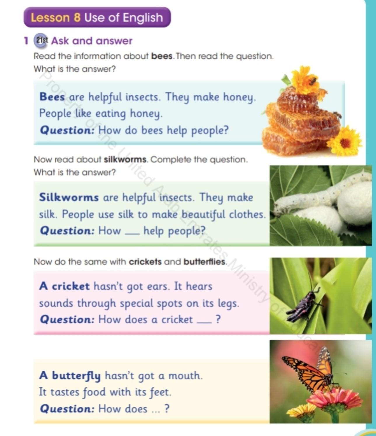 Answer: Silkworms help people by making silk so we can make clothes.