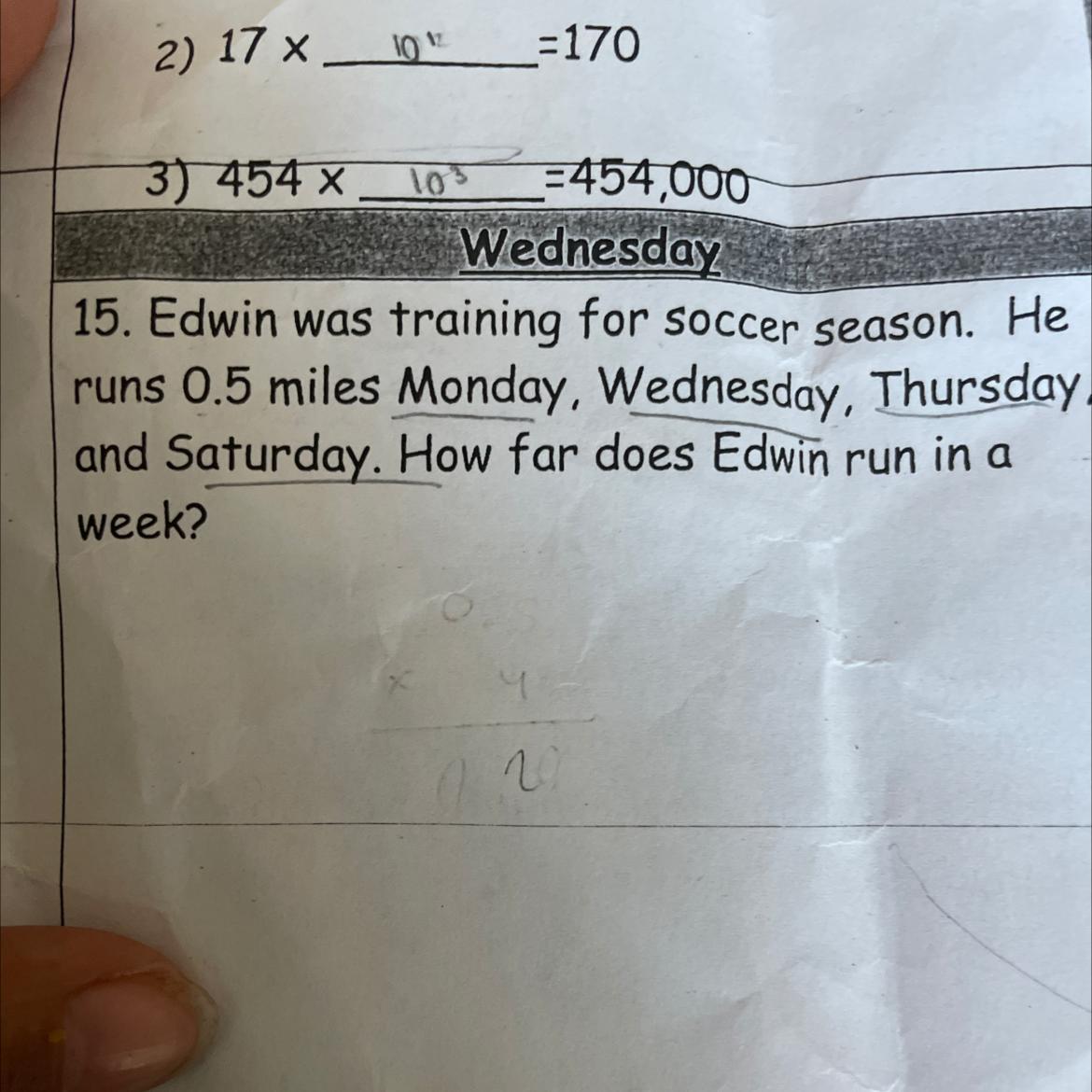 I think you suppose to take 0.5 x 4 because it 4 days, so the answer might be 2 miles.