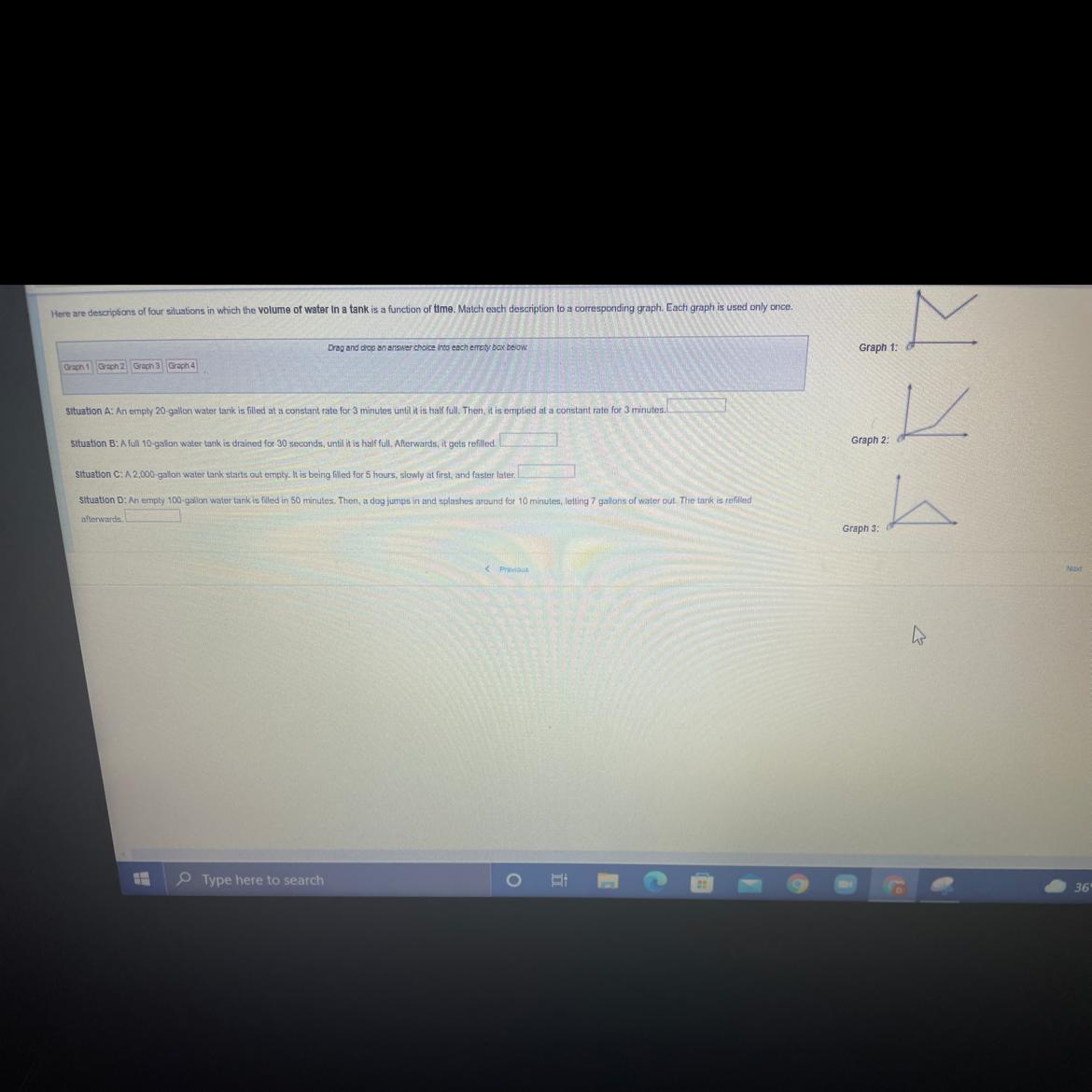 Here time is the independent variable and is on the x-axis and the quantity of the tank is on the y-axis and is the dependent variable.