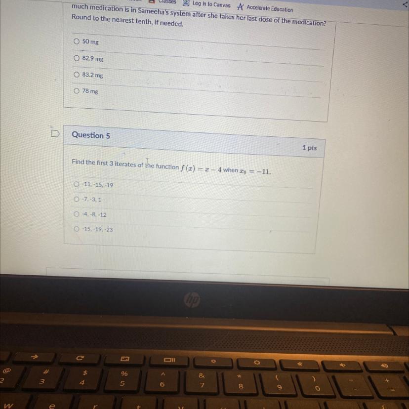 Find the first 3 iterates of the function f (x) = x - 4 when Xo = -11.