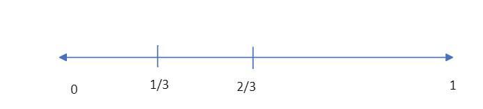 1 and 0 is 2/3, and the half way between 0 and 2/3 is 1/3. However, half