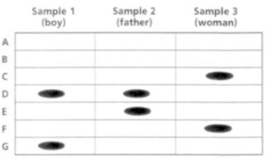 In the band, we observe that the size of the DNA fragments was not similar to the DNA sample of the women but a band was of similar size to the father.