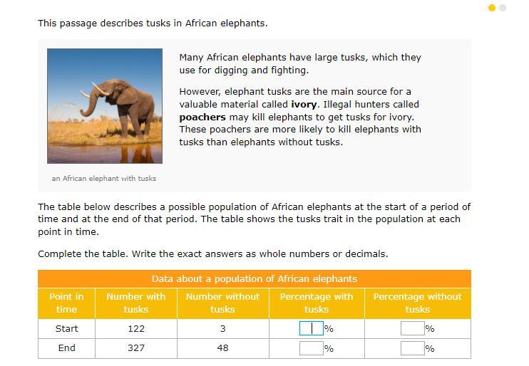 At starting percentage without tusk is 2.4% and with tusk is 97.6%. At end percentage without tusk is 14.6% and with tusk is 85.3%